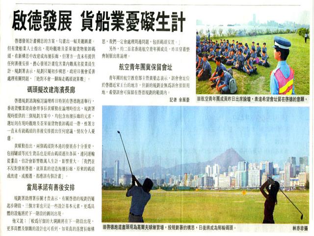 另外,規劃署就啟德規劃檢討3個概念圖方案中,均並建議取消現有的官塘貨物裝卸區及茶果嶺貨物裝卸區,興建海濱長廊及其他設施,影響海面從業員生計。