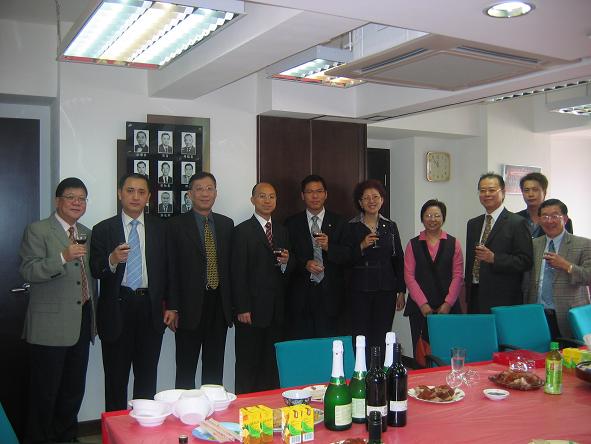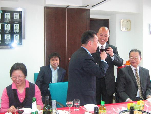 | 本會銀行顧問南洋商業銀行李淑蘭分行主管及其下屬率先來到向大家拜年。 | 本會兩位主要領導黃耀勤理事長及蔡敏理事長齊開香檳,祝賀本會會務興隆,各人家庭幸福事事稱心。 | 本會名譽顧問立法會議議員劉健儀太平紳士百忙中抽空出席本會之新春團拜。 | |